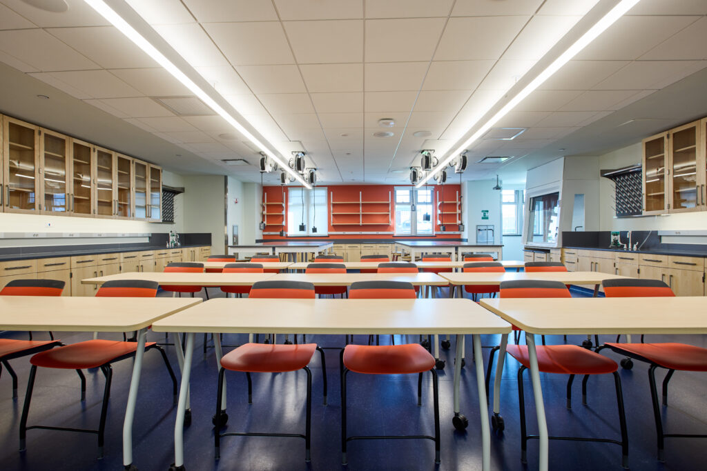 "The big question was, 'what do you envision teaching science would be like in this space in 20 or 30 years?'" says Ms. Evenson. "Science changes, equipment changes, and technology changes. What does that mean in terms of lab spaces? What do we need to continue to grow as teachers? To [be able to] collaborate, design curriculum and have flexible teaching spaces to try new things was really important to us."